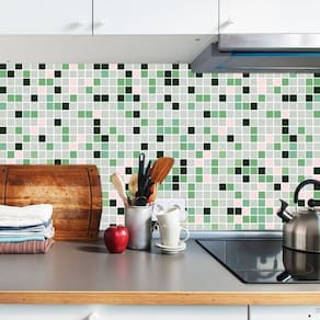 Papel parede pastilha verde e cinza adesivo cozinha banheiro