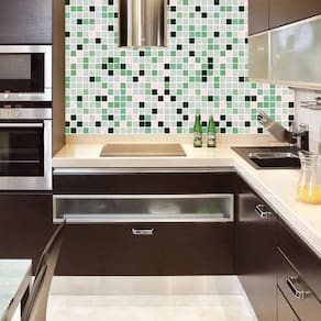 Papel parede pastilha verde e cinza adesivo cozinha banheiro