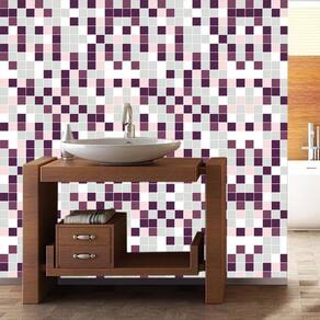 Papel Parede Pastilhas Lilas Cinza Branco Cozinha Banheiro