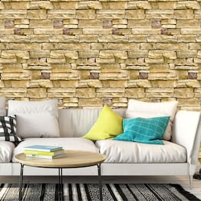 Papel Parede Pedra Tijolos Canjiquinha Amarelo Autocolante