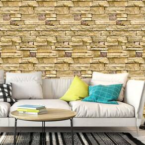 Papel Parede Pedra Tijolos Canjiquinha Amarelo Autocolante