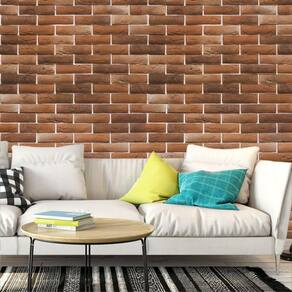 Papel Parede Pedra Tijolos Vermelho Rejunte Branco Adesivo