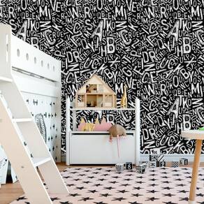 Papel Parede Preto Adesivo Alfabeto Misturado Decorativo