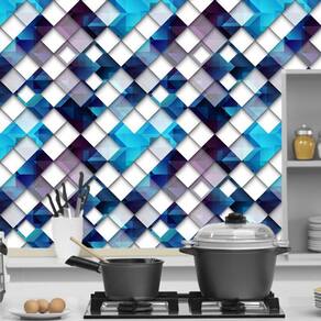 Papel parede quadrados azul preto branco geométrico adesivo