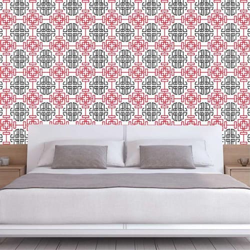 Papel parede quadrados geométrico vermelho e preto adesivo