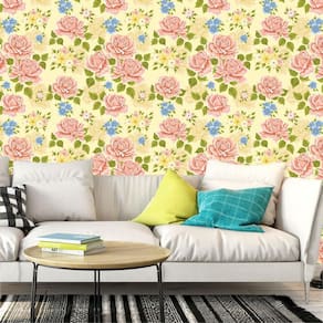 Papel Parede Rosas Vermelhas E Amarelo Adesivo Sala Cozinha