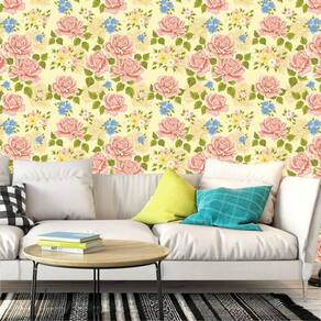 Papel Parede Rosas Vermelhas E Amarelo Adesivo Sala Cozinha