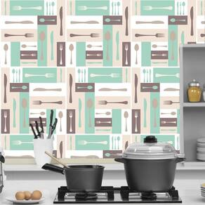 Papel parede talheres coloridos autocolante cozinha lavável