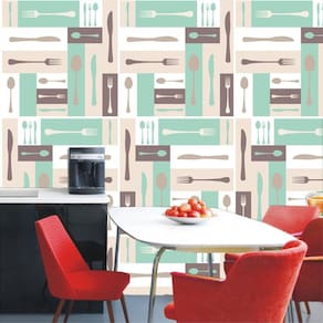 Papel parede talheres coloridos autocolante cozinha lavável