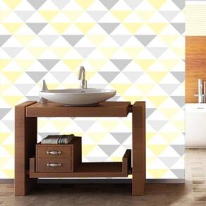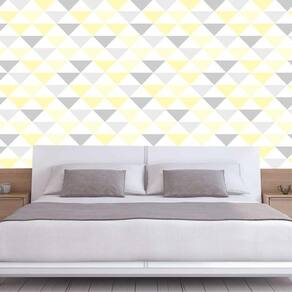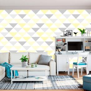 Papel parede triangulo amarelo cinza branco autocolante sala