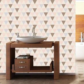 Papel parede triangulo geométrico rosa azul marrom adesivo