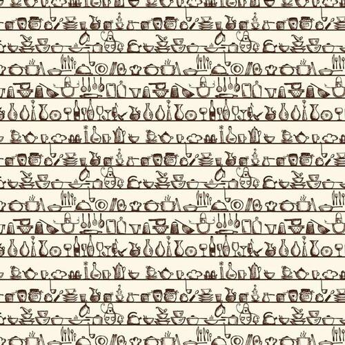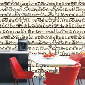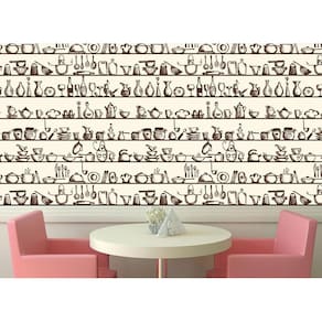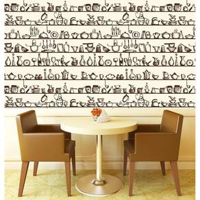 Papel parede utensílios cozinha autocolante lavável marrom