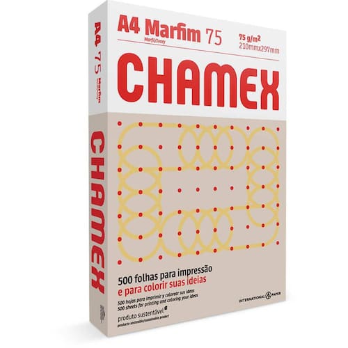 Papel Sulfite A4 Colorido Chamex 75G Marfim Papel Sulfite A4 Colorido Chamequinho 75g Marfim. Também é perfeito para documentos que exijam organização, destaque e rápida visualização.Chamex Colorido é produzido a partir de cultivo de eucalipto 100% renovável, e tratado com pigmentação especial, o que resulta em um papel mais colorido e divertido. A embalagem é transparente para facilitar a visualização da tonalidade. Embalagem: 1 pacote com 500 folhas. Marca: Não Informado Ean: 7891173006950