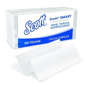 papel interfolha 100% celulose 21,5cm x 19,2cm 2 dobras folha simples. Scott smart com 1. 000 folhas. A toalha scott smart é a proposta de secagem ideal para clientes que procuram