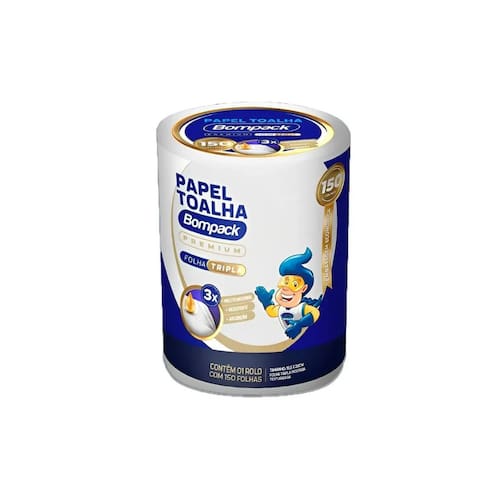 PAPEL TOALHA PARA COZINHA BOMPACK FOLHA TRIPLA 150 FOLHAS - Papel Toalha para Cozinha Bompack – 1 Rolo com 150 Folhas