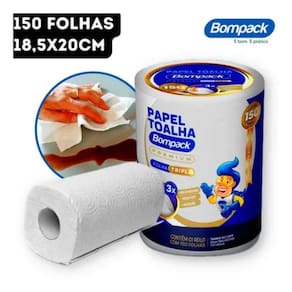 Prático e eficiente, o Papel Toalha Bompack é ideal para o dia a dia na cozinha. Com um rolo de 150 folhas, oferece alta absorção e resistência para secar mãos, utensílios e superfícies. Mais economia e desempenho em um único produto.