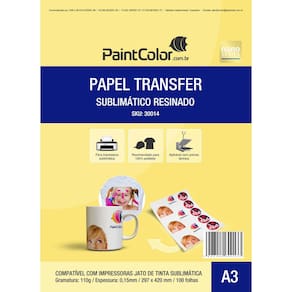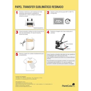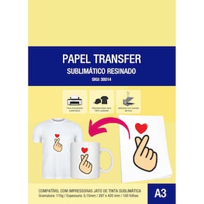 O Papel Sublimático Resinado Fundo Azul oferece secagem rápida e é considerado um dos melhores para sublimação em tecidos sintéticos. Seu revestimento de acetato especial não deixa que a tinta penetre no papel, garantindo cores vibrantes na hora da transferência. Compatibilidade: Produtos: tecidos 100% poliéster, porcelanas, madeiras, metais, plásticos e entre outras superfícies resinadas (acetato).Impressoras: jato de tinta sublimática Características: Quantidade: 1 pacote com 100 folhasGramatura: 110gTamanho: A3 30x40cmTecnologia: Transfer para Impressoras com tinta sublimáticaAcabamento: Resinado (acetato)Material: PapelIndicado: tecidos 100% poliéster, porcelanas, madeiras, metais, plásticos e entre outras superfícies resinadas.Garantia: Contra defeito de fabricaçãoOrigem: Nacional Modo de Usar: 1º – Imprimir a arte desejada no lado frontal do papel em sua impressora para sublimação;2º – Colocar o papel com a parte frontal virada para o produto que deseja estampar;3º – Prensar o produto de acordo com o tempo e temperatura indicada pelo fabricante do mesmo;4º – Para sua segurança aguarde o produto esfriar e remova o papel resinado do produto;