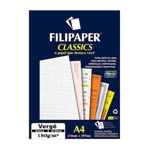 Papel Vergê Branco A4 210X297Mm 180G/M² Filipaper 50 Folhas
