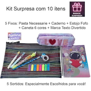 Contém: 10 ítens de Papelaria Fofa + 1 surpresa.
