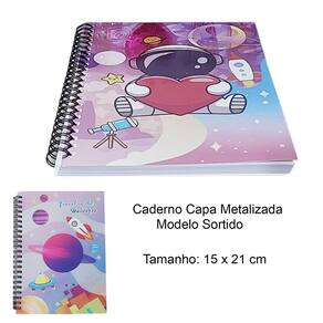 Tamanho: 21cm altura x 15 cm largura. Quantidade de folhas: 80. Tipo de folhas: Pautada. Tipo de encadernação: Espiral. Não é possível a escolha da capa.