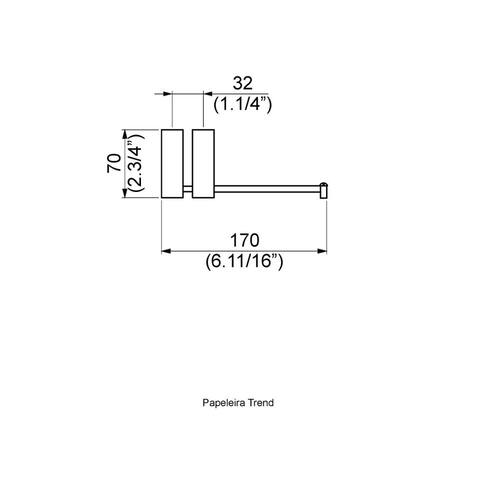 Ficha técnica - Profundidade: 70mm - Com tampa: Não - Altura total: 70mm - Tipo de instalação: De parede - Cor principal: Prateado - Material: Metal - Plataformas excluídas: Android - Capacidade de rolos: 1 Ean: 7896739023518