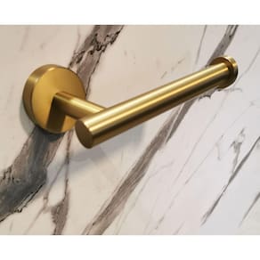 Modelo: Papeleiro Redondo Inox Dourado Altura: 5 cm Comprimento: 17 cm Profundidade: 8,5 cm Material: Inox 304 Cor: Prata fosca
