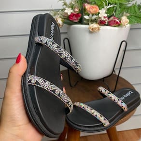 Chinelo Rasteira Beira Rio Strass 8488 105 é um modelo cheio de charme e estilo. Pode ser usada tanto no dia a dia quanto os finais de semana durante passeios e festas. Confeccionado em material sintético, possui detalhes em strass no cabedal, palmilha em Eva e solado emborrachado. Características Material: Sintético Palmilha: Eva Solado: Pvc