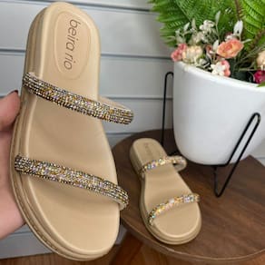 Chinelo Rasteira Beira Rio Strass 8488 105 é um modelo cheio de charme e estilo. Pode ser usada tanto no dia a dia quanto os finais de semana durante passeios e festas. Confeccionado em material sintético, possui detalhes em strass no cabedal, palmilha em Eva e solado emborrachado. Características Material: Sintético Palmilha: Eva Solado: Pvc