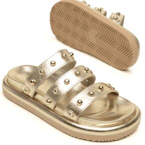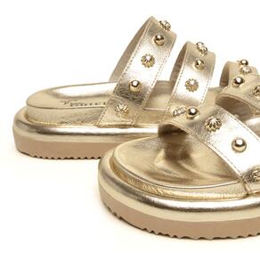 Papete Couro Feminina Emily Ouro - Bege Claro - 36