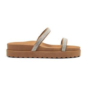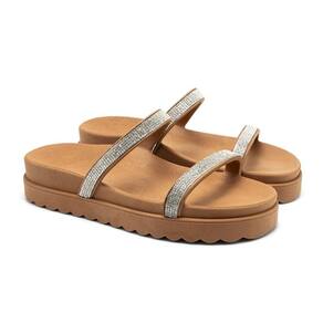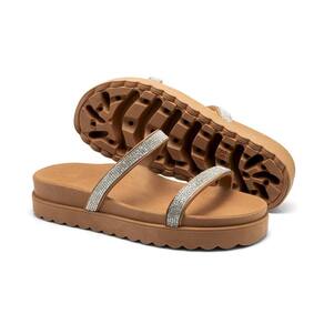 Papete Feminina Com Strass Flatform Sandália Rasteira Brilho - 34 - Marrom