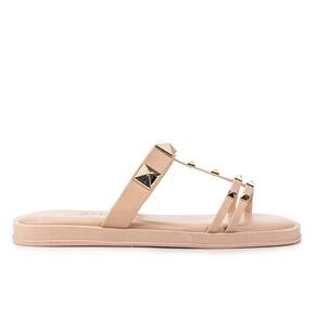 Papete Godiva Casual Tiras Tachas Feminino Creme 338365