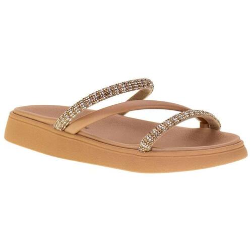 Papete Moleca Três Tiras Strass Feminina Nude 338494