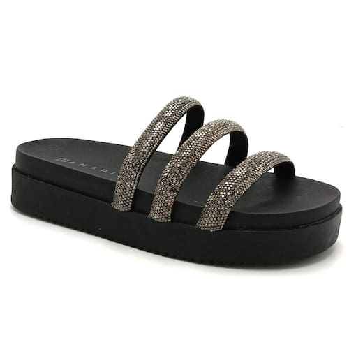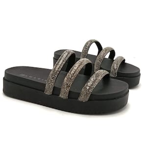 Papete Ramarim Plataforma Três Tiras Strass Feminina Preta 338620