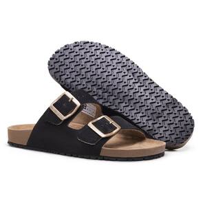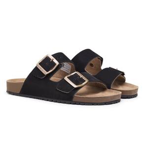 Papete Sandalia Retro Couro Anatomica Fivela de Metal com Regulagem da Moda Verao - 40 - Preto