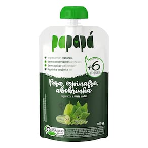 Papinha PAPAPÁ Orgânica Pera Espinafre Abobrinha As novas Papinhas Orgânicas Papapá são 100% naturais e uma ótima opção pra você oferecer sem culpa ao seu bebê! Pensadas para as mamães e papais que se