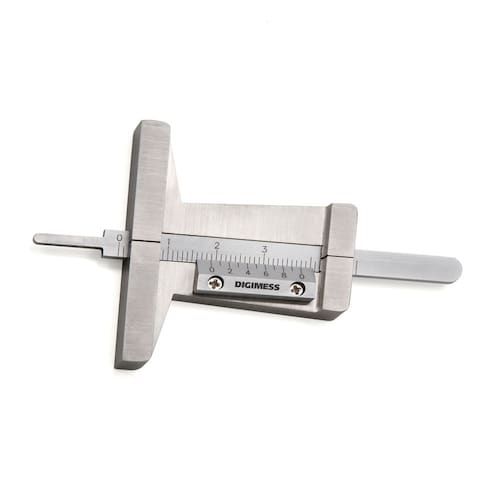 Paquímetro de Profundidade para Sulcos de Pneus Capacidade 30mm Digimess 100.200M - Para medições de profundidade de sulcos de pneus, - Base de apoio de 55mm, - Dimensões da vareta de profundidade de 2x13mm, Especificação técnica - Capacidade: 30mm, - Exatidão: 0,1mm, - Graduação de 0,1mm, - Marca: Digimess, - Código: 100.200M Marca: Não Informado Ean: 7899953330653