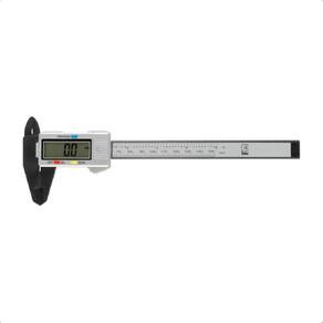 Paquímetro em fibra de carbono e plástico, leve resistente e com alta precisão. Fácil manuseio, visor digital e ótimo acabamento e qualidade Eda. Especificações: - Paquímetro Digital 6 Pol 150 Mm; - Utilizada para medir as dimensões lineares internas, externas e de profundidade de uma peça; - Modelo: 0HB; - Tamanho: 06'' 150 mm; - Faixa de Medição: 06'' 150 mm; - Resolução: 0,1 mm / 0,01''; - Precisão: 0,2 mm / 0,01''; - Amplo display; - Cursor de plástico; - Display de cristal líquido; - Corpo em fibra de carbono; - Acompanha bateria já inclusa; - Tipos de medições: milímetros e polegadas não fracionadas; - Utilizado para realizar medidas externa, interna e profundidade; - Peso: 52g; - Material: Fibra de carbono e plástico.