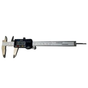 Marca: Titanium Modelo: 04590 Tipo: Paquímetro Universal Capacidade de Medição: 150 mm 6 polegadas Resolução: 0,01 mm 0,0005 polegadas Material: Aço inoxidável temperado, garantindo durabilidade e resistência à corrosão Acabamento: Superfície cromada, oferecendo maior resistência ao desgaste e facilidade de leitura Tipo de Escala: Digital, com display LCD de fácil leitura Função Zero: Permite a calibração em qualquer posição, facilitando medições diferenciais Conversão de Unidades: Possui função para conversão entre milímetros e polegadas Energia: Alimentação por bateria geralmente uma bateria do tipo CR2032 Desligamento Automático: Função de economia de energia que desliga o aparelho após um período de inatividade Capacidade Máxima: 150 mm 6 polegadas Resolução: 0,01 mm 0,0005 polegadas Exatidão: 0,02 mm Tipo de Medição: Interna, externa, de profundidade e de ressaltos Temperatura de Operação: 0 a 40C Umidade Relativa Máxima: 80% Dimensões do Display: Aproximadamente 30 x 10 mm Peso: Aproximadamente 150 gramas Comprimento Total: Aproximadamente 235 mm