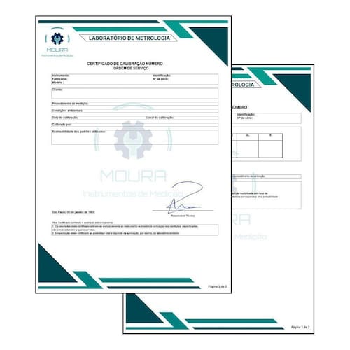 Certificado enviado por e-mail com a calibração em 3 pontos de medição.