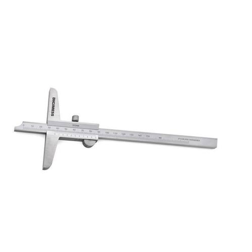PAQUIMETRO PROFUNDIDADE Marca: Digimess Capacidade: 300x0,02mm 100mm Código: 100.204 Descrição geral Fabricados em aço inoxidável temperado Cursor monobloco Escala e cursor com acabamento cromado fosco Parafuso de fixação da medida Graduação de 0,02mm Suporte de 1 ano contra defeitos de fabricação Assistência técnica própria Peças de reposição disponíveis em Certificado de calibração rastreável RBC opcional Imagens meramente ilustrativas Marca: Não Informado