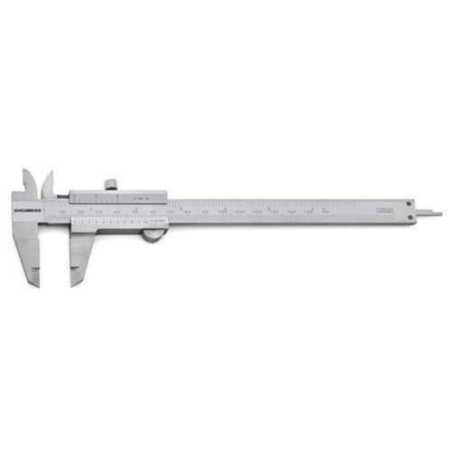 Quadrimensionais Fabricados em aço inoxidável temperado Cursor monobloco Escala e cursor com acabamento cromado fosco Parafuso de fixação da medida Faces de medição lapidadas Deslize do cursor sobre guias ressaltadas, impedindo o desgaste da gravação Capacidade: 200mm/8" / Graduação: 0,05mm/1/128" / Exatidão: 0,05mm 100.003