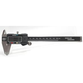 Instrumento de Metrologia usado para medir as dimensões lineares, internas, externas e de profundidade de uma peça.Ideal para fazer medições precisas, tanto para uso profissional em oficinas, escolas, indústrias e comércio ou uso doméstico ou hobby.Fabricado em aço inoxPossui trava e medidor de profundidadeCapacidade de medição de 0 a 200mmDigitos grandesTecla de conversão mm/polZeramento em qualquer ponto da escalaExatidão de aproximadamente +-0,02mmResolução: 0,01mmAcondicionado em estojo plastico Ean: 7898469660247