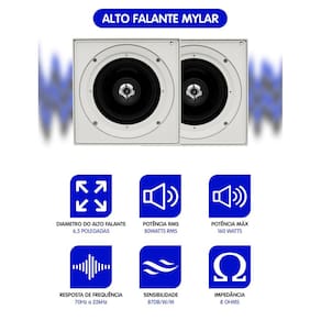 Itens inclusos: - 2 alto-falante kaz de 6,5 polegadas; - 2 arandela quadrada com recorte redondo; - 2 tela de proteção; - suportes para instalação.