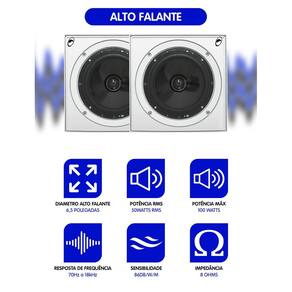 Itens inclusos: - 2 alto-falante kaz de 6,5 polegadas; - 2 arandela quadrada com recorte redondo; - 2 tela de proteção; - suportes para instalação.
