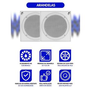 Especificações técnicas arandela: - recorte redondo para alto-falantes de 6,5 polegadas que facilita o alinhamento; - fabricada em material resistente de alta durabilidade; - fácil instalação direta em gessos; - medidas da arandela: 22 x 22 cm; - acabamento na cor branca.