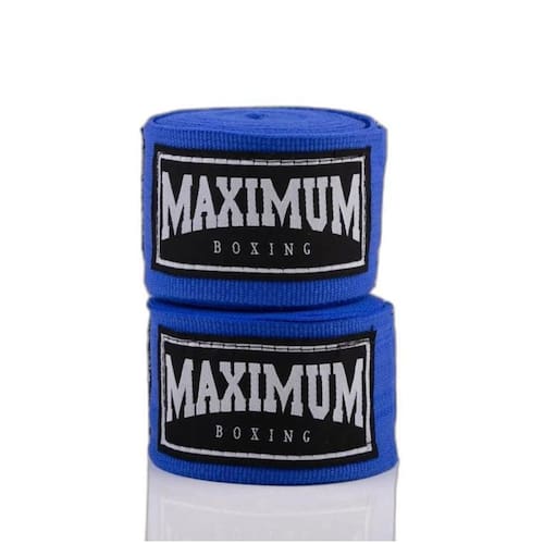 Par Bandagem Maximum Muay Thai 3 Metros Boxe Kickboxing Cor: Azul Tamanho: único Genero: unissex A principal função da Bandagem Maximum é protegeros os ossos e tendões das mãos, ajudando a evitar fraturas e torções.
