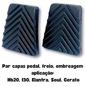 Par de capas para pedal de freio e embreagem, compatíveis com diversos modelos Hyundai e Kia: HB20, i30, Elantra, Soul e Cerato.