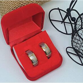 Par de Aliança Anél Oração Pai Nosso em Português Aço Inox 316L Dourado + Estojo Veludo Caixa Porta Jóias Presente