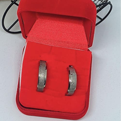 Lindo Anel em Aço Inox Prata Com Oração do Pai Nosso Em Português Acompanha Caixa Em Veludo