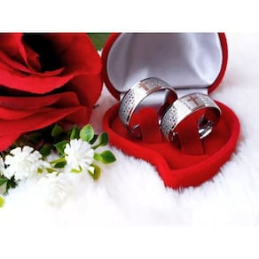 Par de Aliança Compromisso Oração Pai Nosso em Português Aço Inox 316L Prata + Caixa Estojo Veludo Caixinha porta jóia